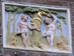 Die middeleeuwse ‘ridder’ is Willem, heer van Brederode (ca 1226-1285), een edelman. Naast hem staat zijn vrouw, Hildegonda van Voorne (ca 1230-1302). Ze zouden een goed beeld van resp. laat 13e en vroeg 14e eeuwse kleding (en heraldiek) moeten geven, maar doen dat niet. Datzelfde geldt voor de 16e eeuwse Haarlemse. Als deze binnen mijn expertisegebied vallende figuren al niet kloppen, hoe zal het dan met de andere figuren zijn? En hoe betrouwbaar ben je dan t.o.v. je publiek? In mijn ogen krijgt men in ieder geval bij die drie figuren dus weer een verkeerd beeld van het verleden, zoals al zoveel gebeurt.