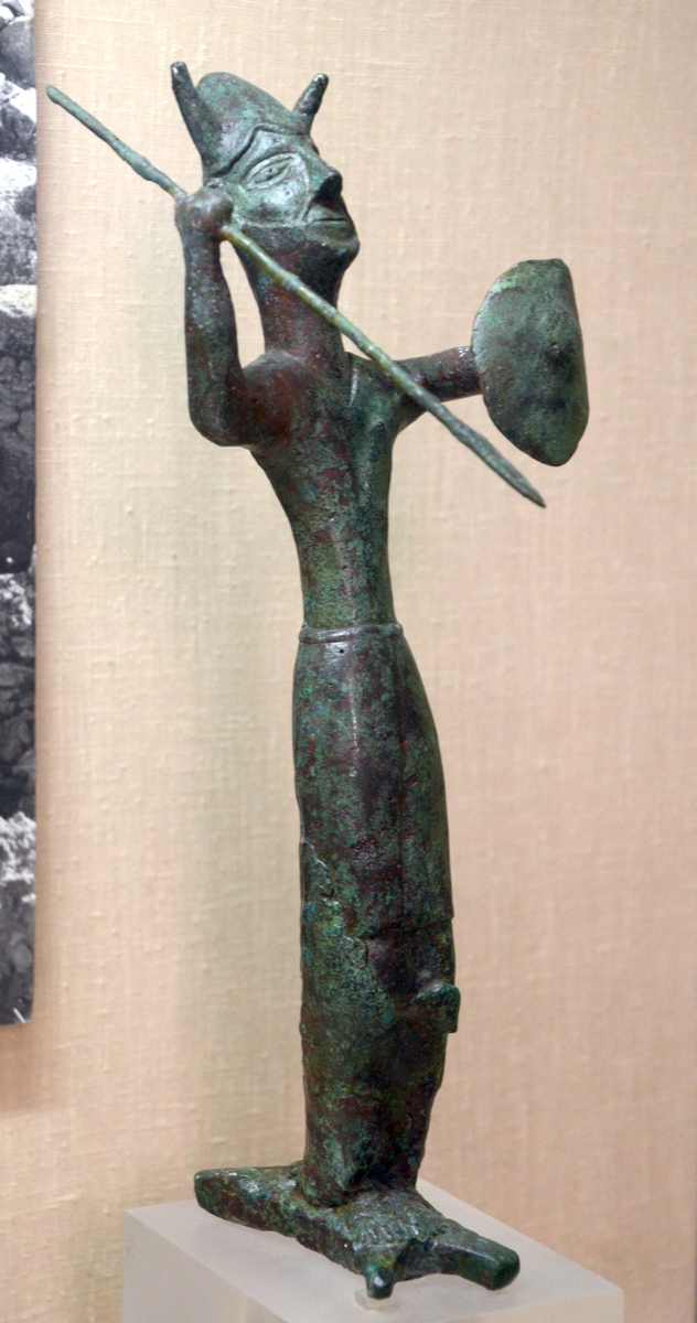 Ik heb al eens eerder geblogd over de badkuip uit Oud-Pafos en over Wen-Amun, de onfortuinlijke Egyptenaar die, na allerlei avonturen in Byblos, aanspoelde in Alashiya. Het is ook de tijd waarin in Enkomi indrukwekkende bronzen voorwerpen zijn gemaakt, zoals de gehoornde god, de “god op de bronsbaar” hieronder en de bronzen standaard helemaal bovenaan, die vanaf morgen zijn te zien in het Rijksmuseum van Oudheden.