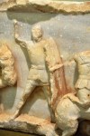 In dat museum is ook het bovenstaande reliëf te zien. Het stamt uit de derde eeuw v.Chr. en toont een Iberische krijger. Of beter: een Turdetaanse krijger, want zo heetten de mensen die hier woonden voordat de Romeinen hier hun macht vestigden. Het reliëf behoort bij een langere reeks verwante maar verschillende reliëfs. De naakte soldaat, met schild en zwaard uitgerust, loopt hier naar links; op een ander reliëf loopt hij de andere kant op en zien we het zwaard beter dan het schild.