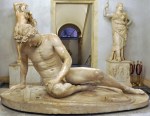 Het bovenstaande beeldje, tegenwoordig te zien in het Louvre in Parijs, is afkomstig uit Myrina, een havenstadje op het Griekse eiland Lemnos. Een krijgsolifant valt een soldaat aan die we aan de hand van zijn grotendeels naakte lichaam en zijn langwerpige schild kunnen identificeren als een Kelt – denk aan de Stervende Galliër die uit Pergamon.
