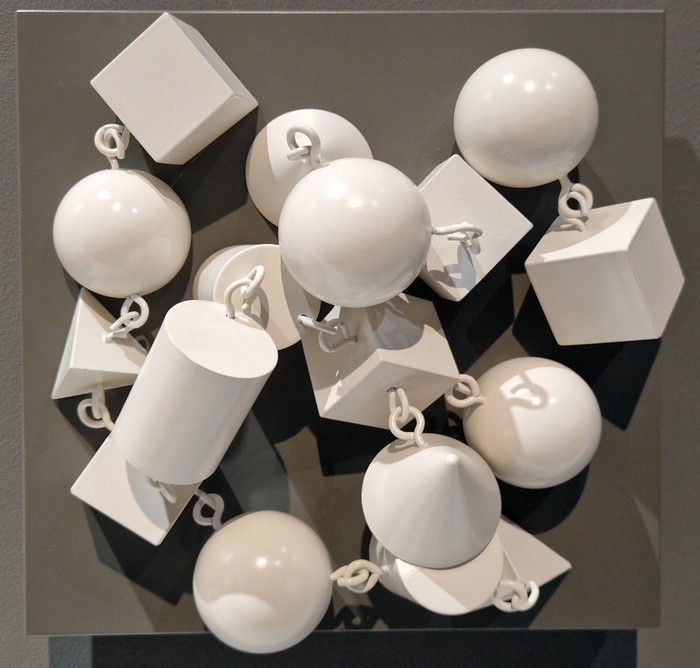De eigenschappen van de atomen zelf kunnen we niet zien. Maar als de atomen combinaties gaan vormen en zodoende grotere elementen creëren, dan geven zij hun eigenschappen wel aan die elementen mee. Zodoende kunnen de verschillende eigenschappen van de onderliggende bouwstenen tóch zichtbaar worden.
