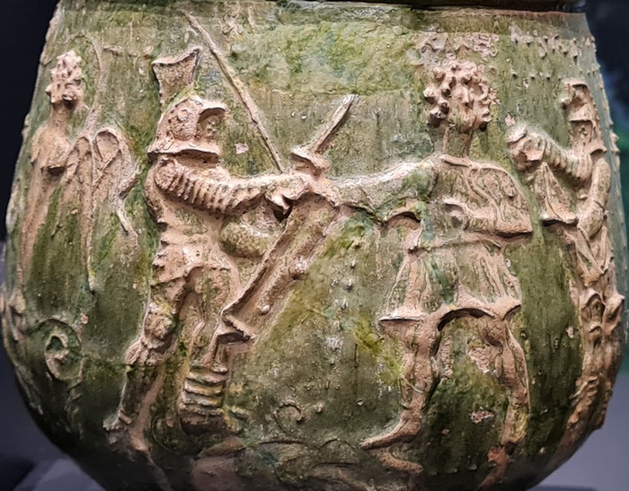 Black Mastro kijkt echter alleen naar dit ene reliëf. Ik bekeek verschillende afbeeldingen van gladiatoren op reliëfs, mozaïeken en fresco’s, en merkte op dat de meeste magere, atletisch uitziende gladiatoren dateren uit de eerste eeuw v.Chr. of de eerste eeuw na Chr. Ze zijn aangetroffen in het westelijk deel van het Romeinse Rijk. De afbeeldingen van de zwaarder gebouwde gladiatoren dateren hoofdzakelijk uit de tweede en derde eeuw na Chr. en komen uit de oostelijke rijkshelft. Die strijders ogen molliger, maar hun spieren, vooral die van de borst, zijn nog steeds te herkennen. Dit is misschien wat de bekende arts Claudius Galenus aanduidde als het zachte vlees.