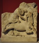 De godenwereld is al even pluriform. De godin Vihansa uit Tongeren draagt, zoals ik al eens aanstipte, een Germaanse naam (vermoedelijk wīga, “strijden” + ansu, “godheid”, dus “krijgsgodin”). Epona is dan weer Keltisch. Het haantje van Burchten waarover ik al eens schreef, is gewijd aan de godin Arcanua, die we het beste kennen uit Britannia. En daarnaast is er natuurlijk het gangbare Romeinse pantheon: Jupiter, Mercurius, Kybele, Mars, Hercules, Fortuna, Juno, Diana, Sol, Apollo, Minerva, Isis, Victoria. Het standaardlijstje.