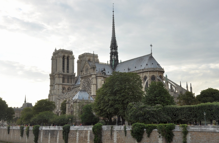 Ik ben altijd geneigd de Notre-Dame van Parijs in kwantitatieve en niet in kwalitatieve termen te beschrijven. De kerk mag dan een uniek voorbeeld zijn van vroeg-gotische bouwkunst, verder is alles gewoon alleen maar groot. De kerk zelf is groot, het hoofdorgel is groot maar klinkt niet echt mooi, en er is in de loop der tijd het nodige aan gesleuteld, net als aan de kerk zelf. In 1845 heeft de thans omstreden architect Eugène Viollet-le-Duc de kathedraal volgens de mode van die tijd behoorlijk opgeleukt, bijvoorbeeld met de vieringtoren, de “Flèche”, die bij de brand, inmiddels vijf jaar geleden, zo dramatisch brandend neerstortte.