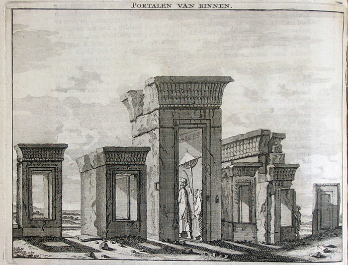 Op 8 november 1704 arriveerden Cornelis de Bruijn en VOC-ambtenaar Adriaan Backer in Persepolis, waar ze tot 23 januari 1705 zouden blijven. Ze waren niet de eerste westerlingen die de oude stad bezochten. Ze ligt immers langs de hoofdweg van de Perzische Golf en Shiraz naar Isfahan. Verschillende Europese reizigers hadden al beschrijvingen gegeven van Chehel Minar, “veertig kolommen”, maar geen van hen verbleef tweeënhalve maand tussen de ruïnes, geen van hen raakte zo vertrouwd met de plek, geen van hen maakte zulke prachtige illustraties.