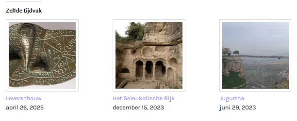 Als u erop klikt, krijgt u gelijktijdige dingen te zien. Bovendien staan aan de voet van elk blogje voortaan drie extra plaatjes, die eveneens betrekking hebben op gelijktijdige zaken. Het blogje over de leverschouw verwijst dus bovenaan naar de jaren 125-100 v.Chr., terwijl u onderaan verwijzingen ziet naar het Seleukidische Rijk, koning Jugurtha en, eh, leverschouw.