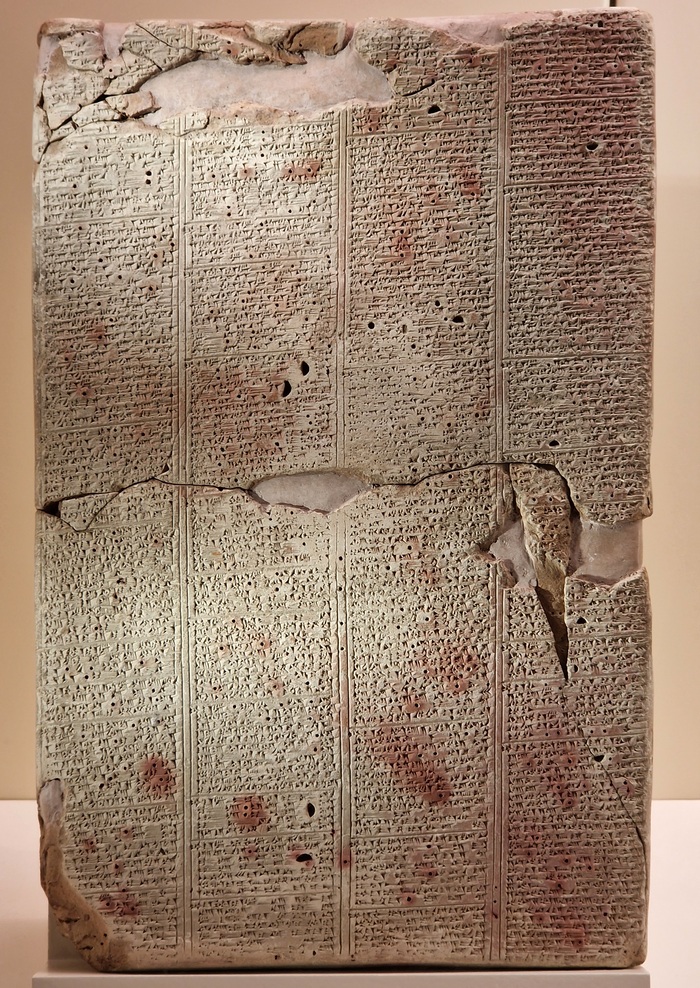 Dat het dragen van een hoofddoek in Mesopotamië duidde op de huwelijkse status, blijkt allerlei teksten. Eén voorbeeld is bovenstaand kleitablet uit Aššur, daterend uit de regering van de Assyrische koning Tiglat-Pileser I (r. 1116-1077) en gewijd aan de rechten van vrouwen. Daaruit blijkt andermaal dat de hoofddoek het voorrecht was van een getrouwde, vrije dame; het was slavinnen en prostituees niet toegestaan een hoofddoek te dragen. Gegeven de straf was het onderscheid tussen respectabele en minder respectabele vrouwen belangrijk:
