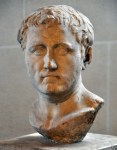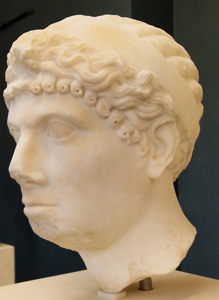 Hij was niet de eerste koning in de regio: zijn vader Gaïa heerste al over de oostelijke Numidiërs, die bekendstaan als de Massyliërs. Een andere koning, Syfax, heerste over de Masaeisyliërs in het westen, verenigde beide rijken en werd vervolgens verdreven door Massinissa. Met Romeinse steun regeerde hij een halve eeuw en zou zijn koninkrijk hebben opgestoten in de vaart der volken. Dat lezen we althans bij de Griekse geschiedschrijver Polybios, die verrast zal zijn geweest door de Numidische macht rond het midden van de tweede eeuw, maar niet wist hoe sterk het rijk al in de derde eeuw was geweest. We hebben Massinissa’s portret op munten, maar ik heb nooit een echt helder exemplaar gevonden, dus we moeten het doen met het onderstaande plaatje.