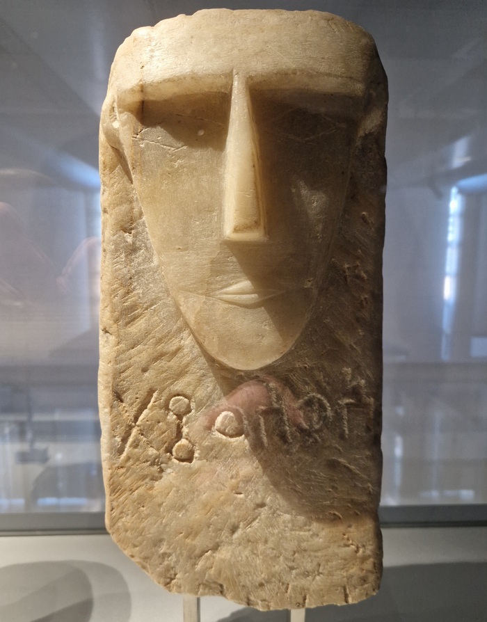 Het zijn wonderlijke kunstwerkjes: alleen een gezicht, altijd ongeveer half zo groot als in het echt, meestal gemaakt van albast, nooit helemaal goed van proporties, vaak wat vierkant, alsof de beeldhouwer een geometrisch model volgde. Voor zover ik kan zien, zijn ze gemaakt tussen pakweg 500 v.Chr. en 300 na Chr.