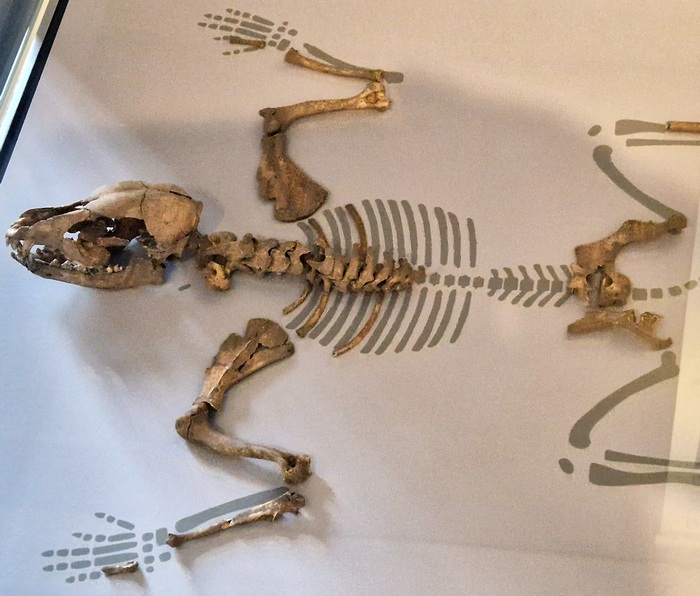 We moeten Dierendag niet ongemerkt voorbij laten gaan, en dus moeten we het eens hebben over een hond, want dat is toch maar de beste vriend van de mens. Alleen heb ik niet zo’n vrolijk stukje. Het bovenstaande hondje is maar een half jaar oud geworden en het is nogal sneu met hem afgelopen. Of haar – er zijn onvoldoende botten gevonden om te determineren of het een reu of een teef was. Het dier was vermoedelijk mank.